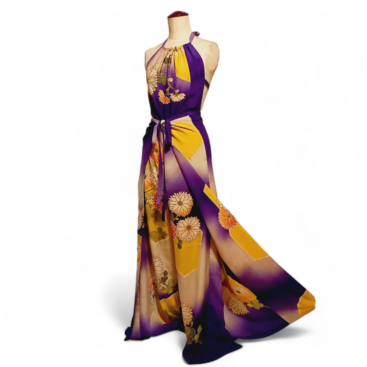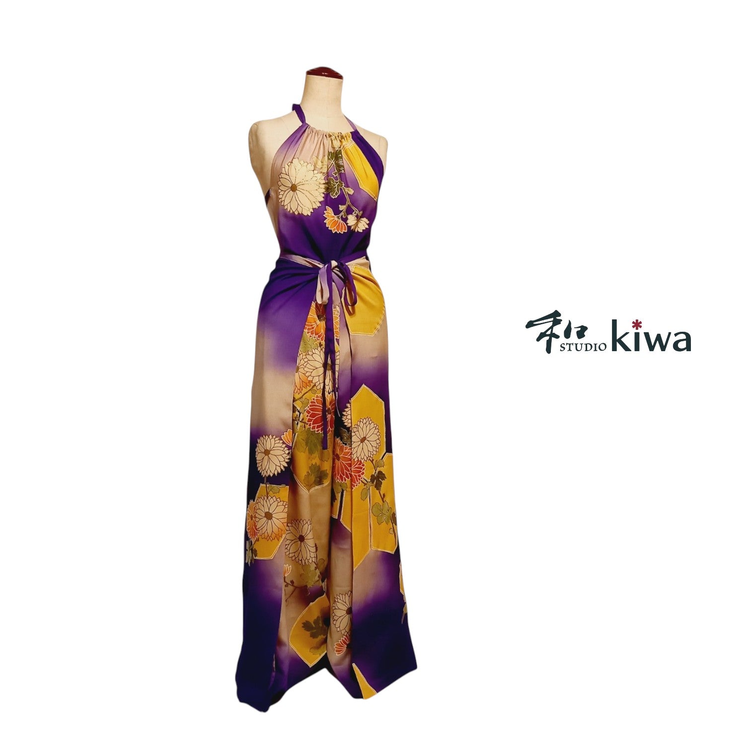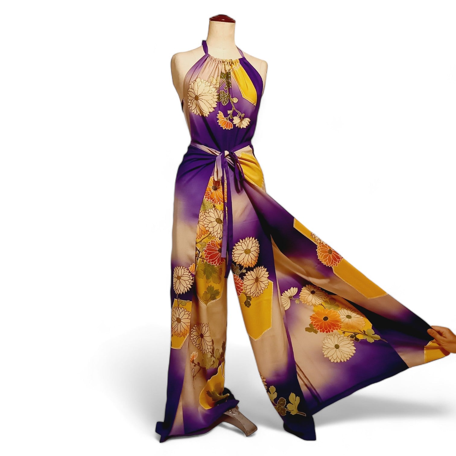 コレクションドレス オールインワンラップパンツ 訪問着 紫菊のオールインワンラップパンツ