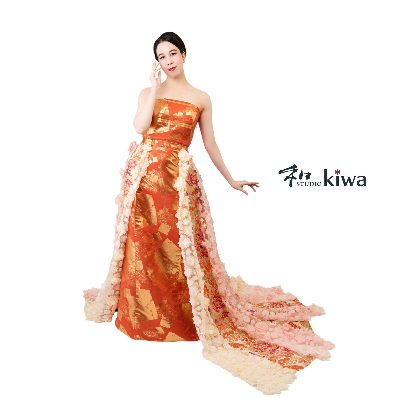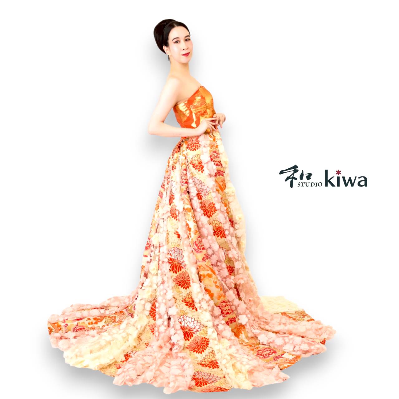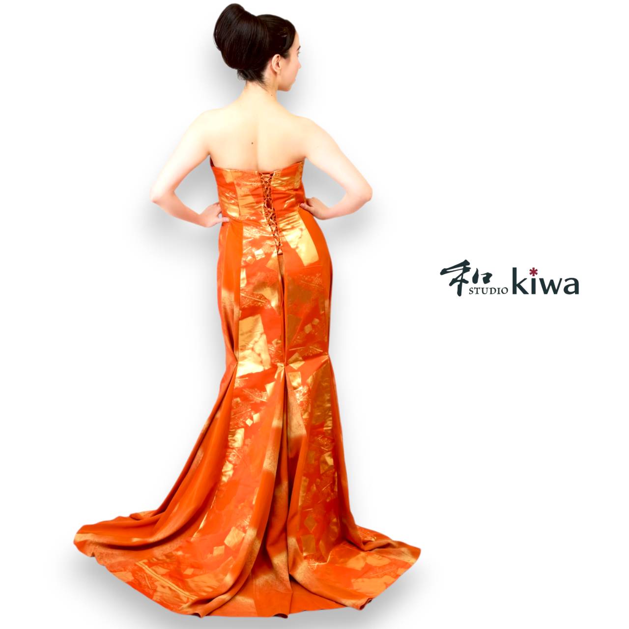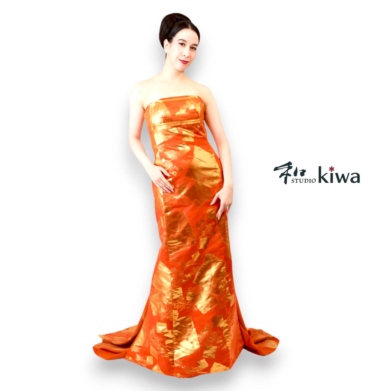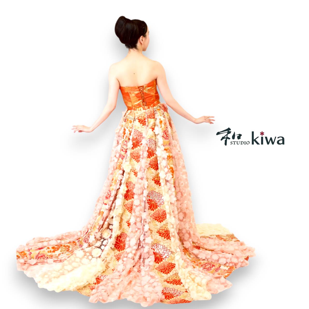コレクションドレス ビスチェドレス 袋帯 半幅帯 羽織 オレンジと花レースのビスチェドレス