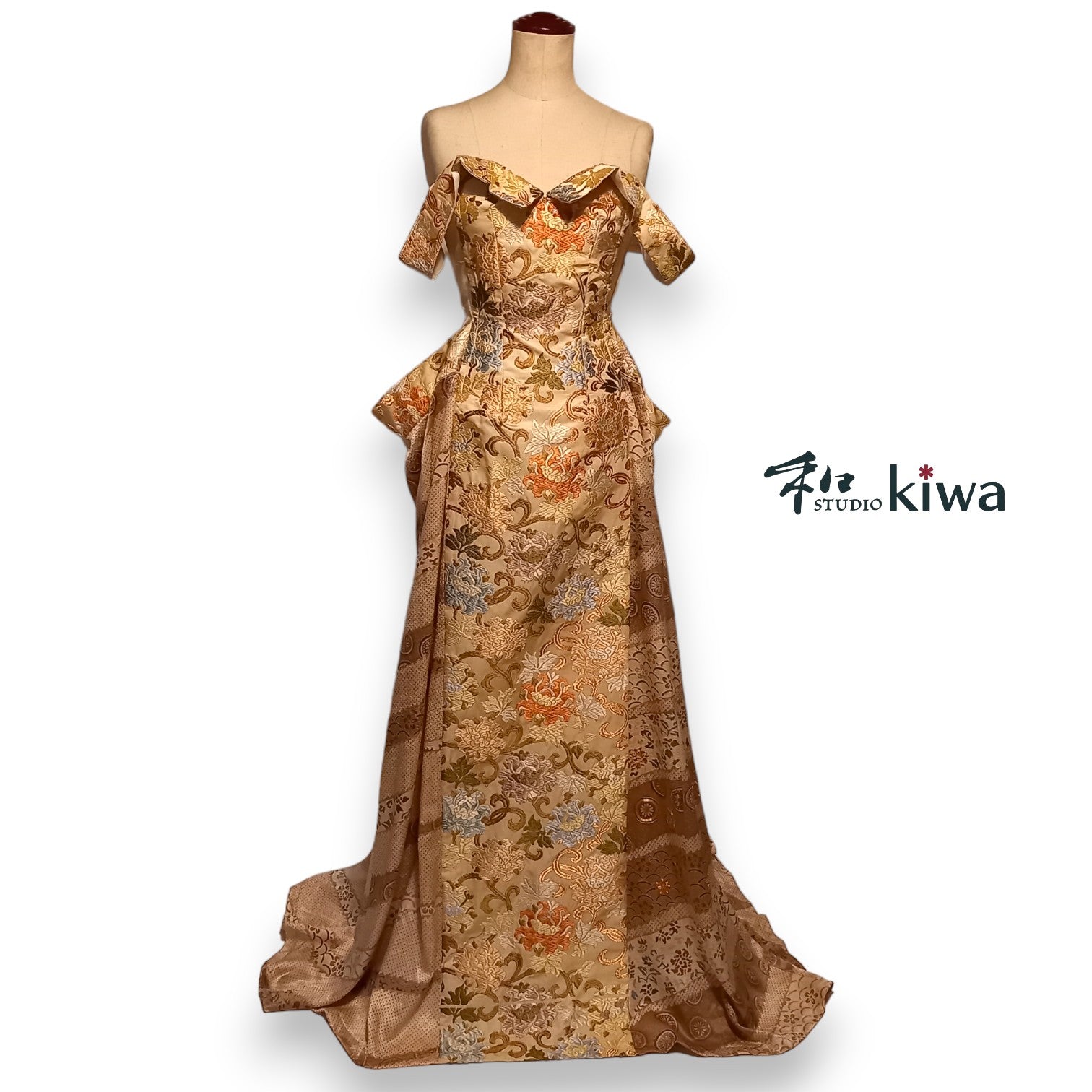 コレクションドレス ビスチェドレス 訪問着 帯 黄金色植物柄のビスチェドレス